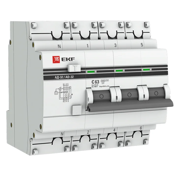 Дифференциальный автомат АД-32 3P+N 63А/30мА (хар. C, AC, электронный, защита 270В) 4,5кА EKF PROxima
