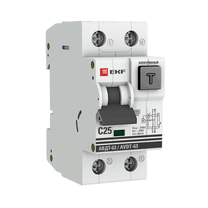 Дифференциальный автомат АВДТ-63 25А/30мА (характеристика С, электронный, тип А) 6кА EKF PROxima