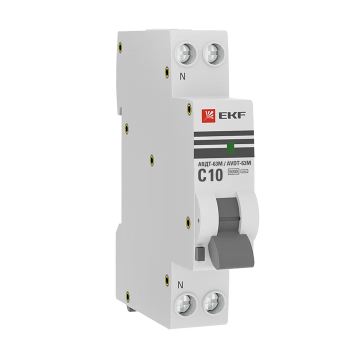 Автоматический выключатель дифференциального тока АВДТ-63 EKF PROxima представляет аппарат, сочетающий функции автоматического выключателя с электромеханическим или электронным УЗО. При обнаружении автоматическим выключателем в защищаемом участке сети тока утечки (повреждения) на землю или сверхтока (тока перегрузки иликороткого замыкания) происходит срабатывание устройства, приводящее к отключению защищаемой сети. Возможна коммутация алюминиевым и медным проводником.Автоматический выключатель дифференциального тока малогабаритный АВДТ-63М EKF PROxima представляет аппарат, сочетающий функции автоматического выключателя с электронным УЗО типа АС в компактном корпусе шириной один модуль. При обнаружении автоматическим выключателем на защищаемом участке сети тока утечки (повреждения) на землю или сверхтока (тока перегрузки или короткого замыкания) происходит срабатывание устройства, приводящее к отключению защищаемой сети. Особое отличие дифференциальных автоматических выключателей EKF с электронным УЗО – в наличии блока защиты от перенапряжения. Возможна коммутация алюминиевым и медным проводом.