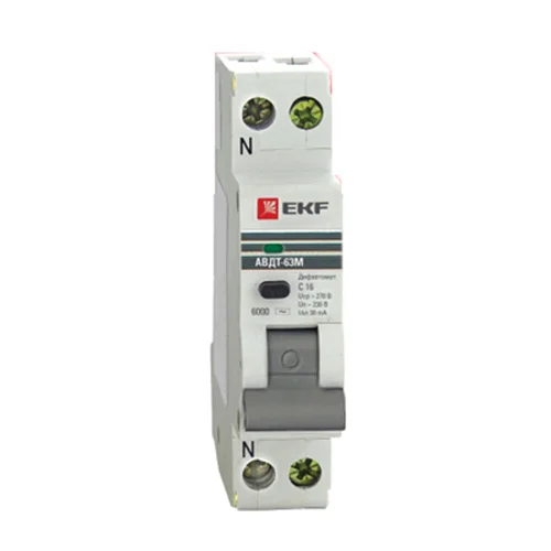 Автоматический выключатель дифференциального тока АВДТ-63 EKF PROxima представляет аппарат, сочетающий функции автоматического выключателя с электромеханическим или электронным УЗО. При обнаружении автоматическим выключателем в защищаемом участке сети тока утечки (повреждения) на землю или сверхтока (тока перегрузки иликороткого замыкания) происходит срабатывание устройства, приводящее к отключению защищаемой сети. Возможна коммутация алюминиевым и медным проводником.Автоматический выключатель дифференциального тока малогабаритный АВДТ-63М EKF PROxima представляет аппарат, сочетающий функции автоматического выключателя с электронным УЗО типа АС в компактном корпусе шириной один модуль. При обнаружении автоматическим выключателем на защищаемом участке сети тока утечки (повреждения) на землю или сверхтока (тока перегрузки или короткого замыкания) происходит срабатывание устройства, приводящее к отключению защищаемой сети. Особое отличие дифференциальных автоматических выключателей EKF с электронным УЗО – в наличии блока защиты от перенапряжения. Возможна коммутация алюминиевым и медным проводом.