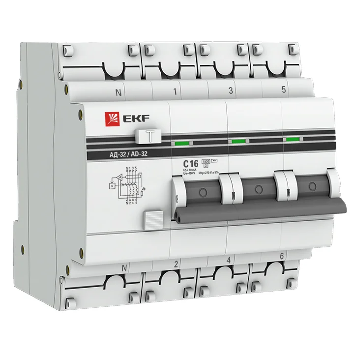 Дифференциальный автоматический выключатель АД-32 EKF PROxima представляет собой аппарат, сочетающий функции автоматического выключателя с устройством защитного отключения. При обнаружении автоматическим выключателем в защищаемом участке сети тока утечки (повреждения) на землю или сверхтока (тока перегрузки или короткого замыкания) происходит срабатывание устройства, приводящее к отключению защищаемой сети. Ассортимент АД-32 дополнен дифавтоматами АД-32 тип А и АД-32 селективными.