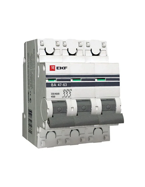 Автоматические выключатели ВА 47-63 4,5 кА EKF PROxima являются механическими коммутационными аппаратами и соответствуют ГОСТ Р50345-2010. Особенностью данной серии выключателей является усовершенствованная конструкция. В выключателях имеются пластиковые крышки, закрывающие доступ к винтовому зажиму и служащие для опломбирования выключателей, что исключает несанкционированный доступ к проводникам. Корпус выключателей усилен дополнительными заклепками для устранения эффекта расхождения корпуса. Выключатели оборудованы удобной ручкой управления, обеспечивающей надежное оперирование изделиями. На лицевой панели выключателей имеется цветовой индикатор состояния. Конструкция установочного зажима обеспечивает свободную установку выключателя на DIN-рейку.