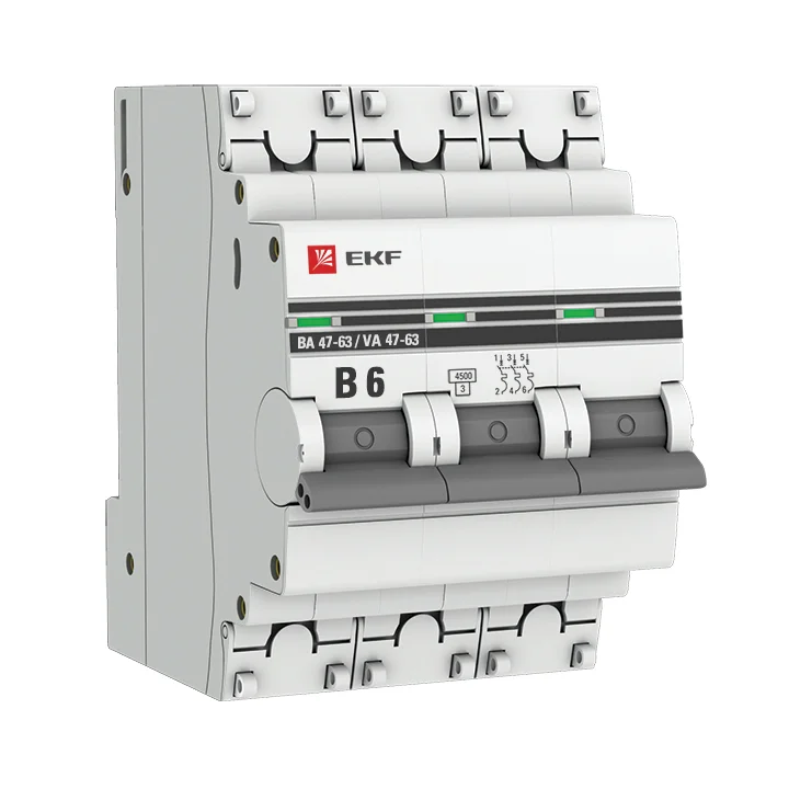 Автоматический выключатель 3P 6А (В) 4,5kA ВА 47-63 EKF PROxima