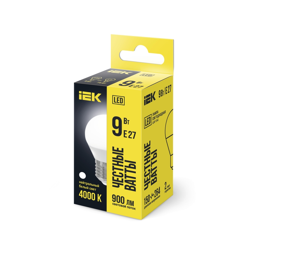 Лампа LED G45 шар 9Вт 230В 4000К E27 IEK