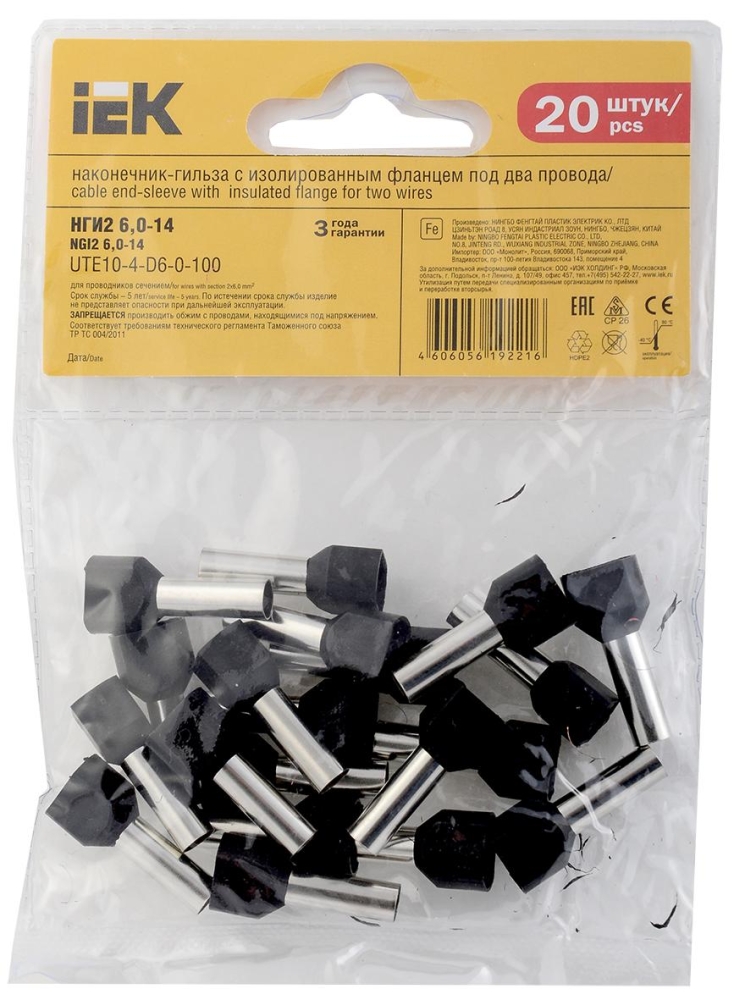 Наконечник ншви(2) 6,0-14 черный (20шт/упак) iek