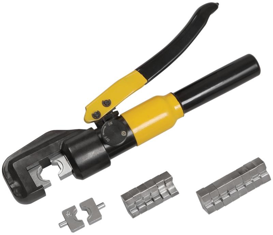 Гидравлические прессы позволяют создавать механические соединения типа кабельная жила-гильза или кабельная жила-наконечник с помощью механической опрессовки. Прессы снабжены сменными матрицами, предназначенными для различных сечений жил.
