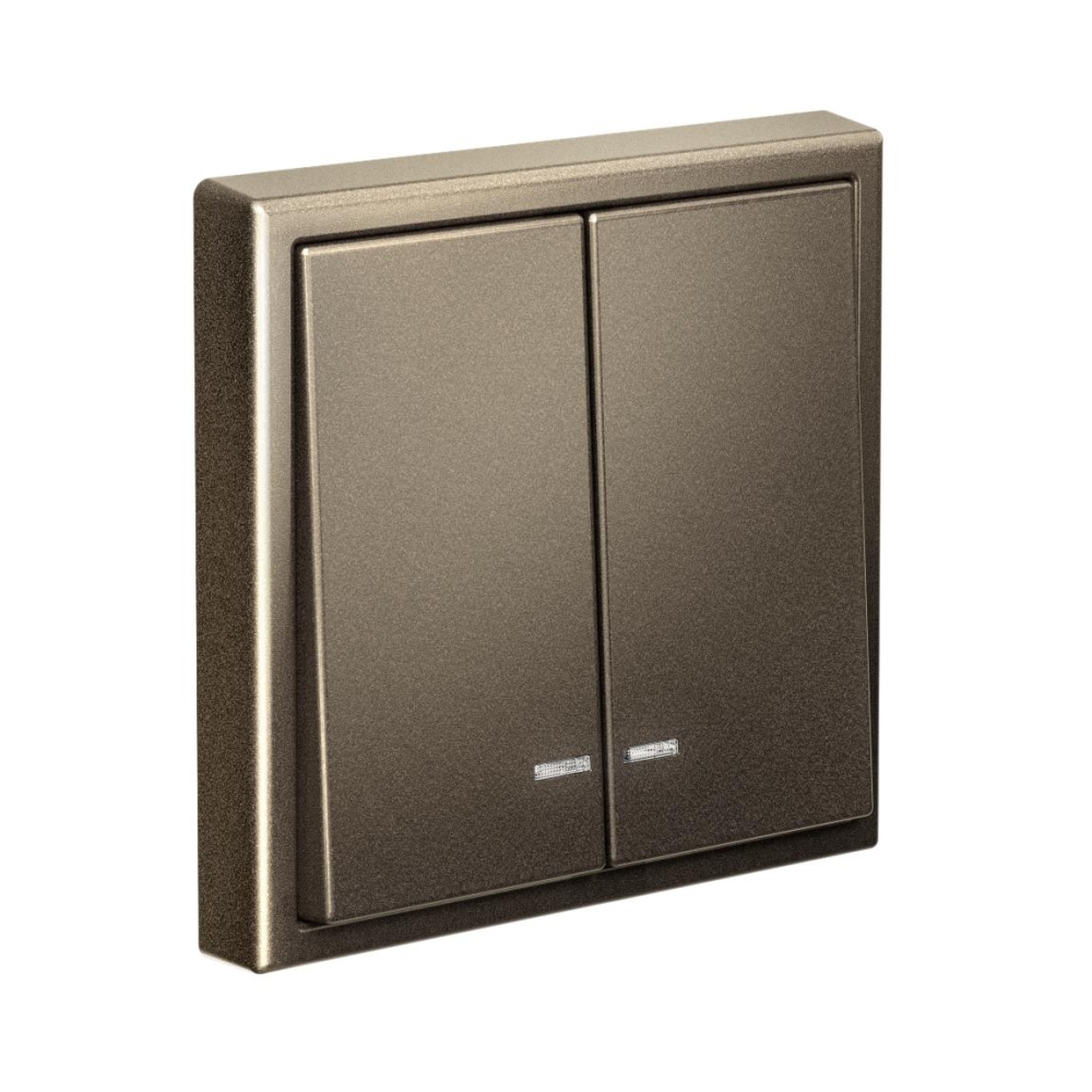 Механизм Systeme Electric серии ArtGallery в цвете мокко выключателя 2-клавишного c подсветкой подходит для сетей 250 В, на ток 10 А.