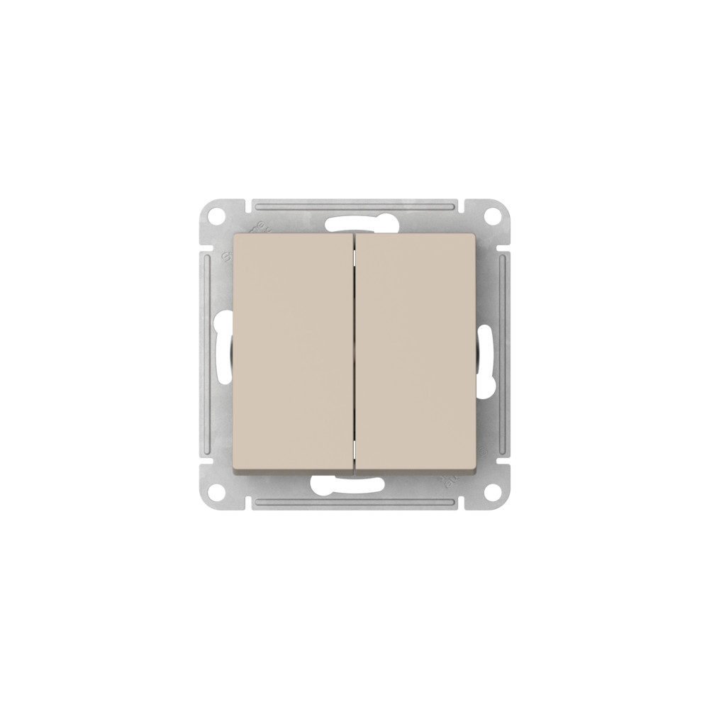 Механизм с быстрозажимными клеммами Systeme Electric (ранее Schneider Electric) серии AtlasDesign в цвете песочный 2-клавишного выключателя подходит для сетей 250 В, на ток 10 А. С помощью новых быстрозажимных клемм монтаж розеток и выключателей стал намного быстрее. Теперь подключение не требует использования отвертки.