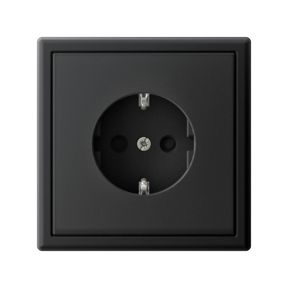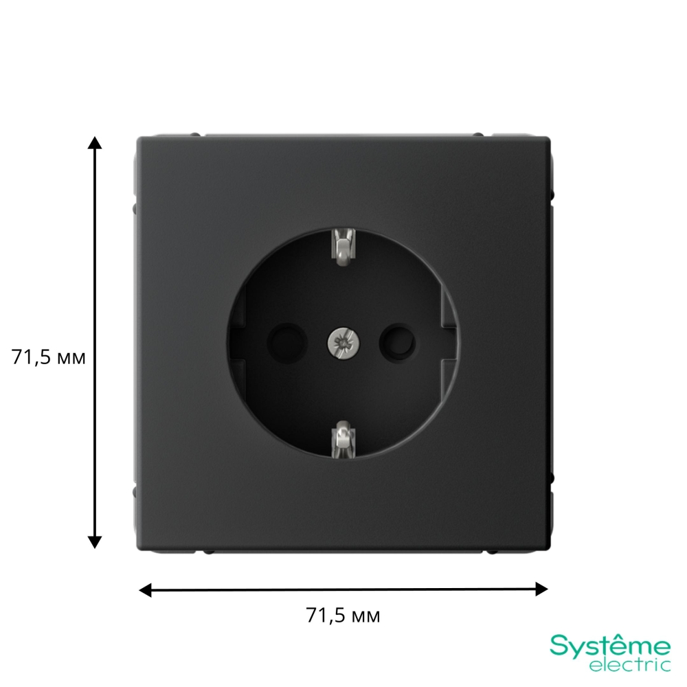 Механизм с быстрозажимными клеммами Systeme Electric серии ArtGallery в цвете карбон розетки одинарной с заземлением и шторками подходит для сетей 250 В, на ток 16 А.