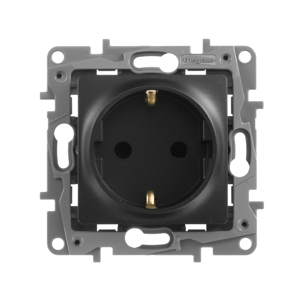 Розетка с заземлением и защитными шторками Legrand Etika для скрытого монтажа, цвет антрацит. Максимальный ток 16 А, максимальная мощность 3680 Вт. Применяется в зданиях, оборудованных для повышения безопасности проводкой с заземлением (с защитным проводником). Рекомендуются к применению в квартирах и помещениях с детьми. Шторки осуществляют защитную функцию путём ограничения доступа к токоведущим контактам. Доступ открывается только при подключении вилки.