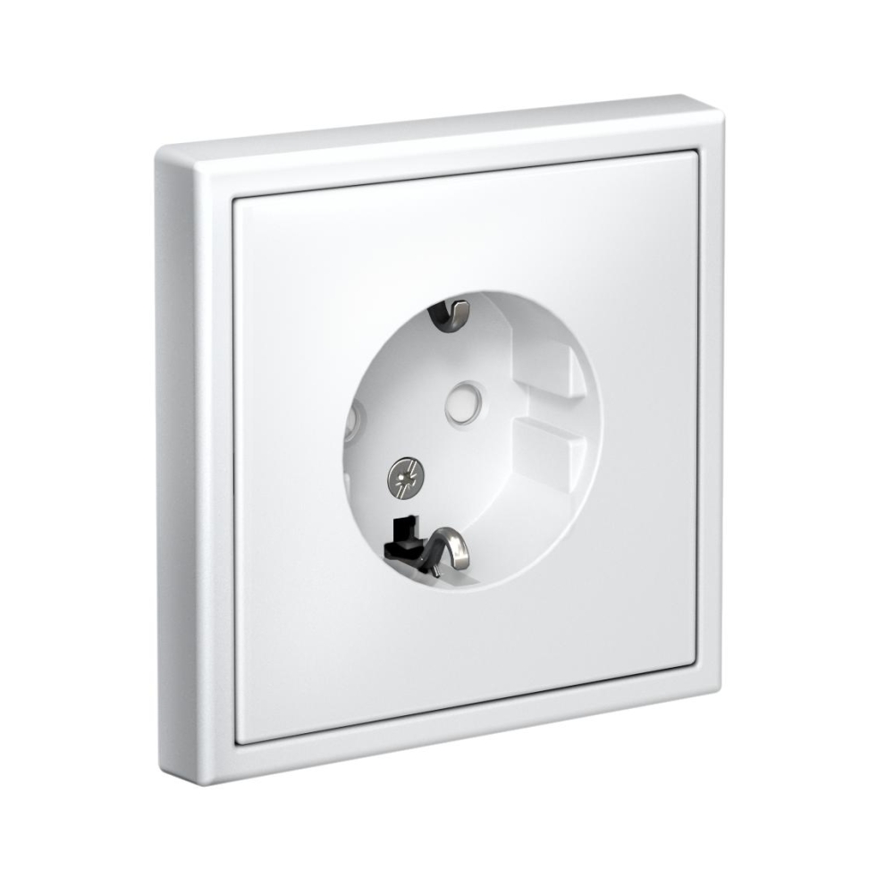 Механизм Systeme Electric серии ArtGallery в цвете белый розетки одинарной с заземлением и шторками подходит для сетей 250 В, на ток 16 А.