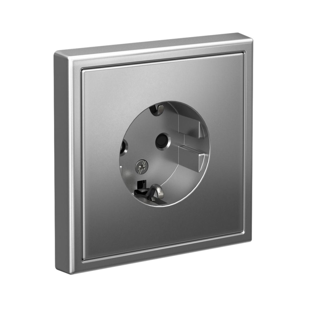 Механизм Systeme Electric серии ArtGallery в цвете сталь розетки одинарной с заземлением и шторками подходит для сетей 250 В, на ток 16 А.
