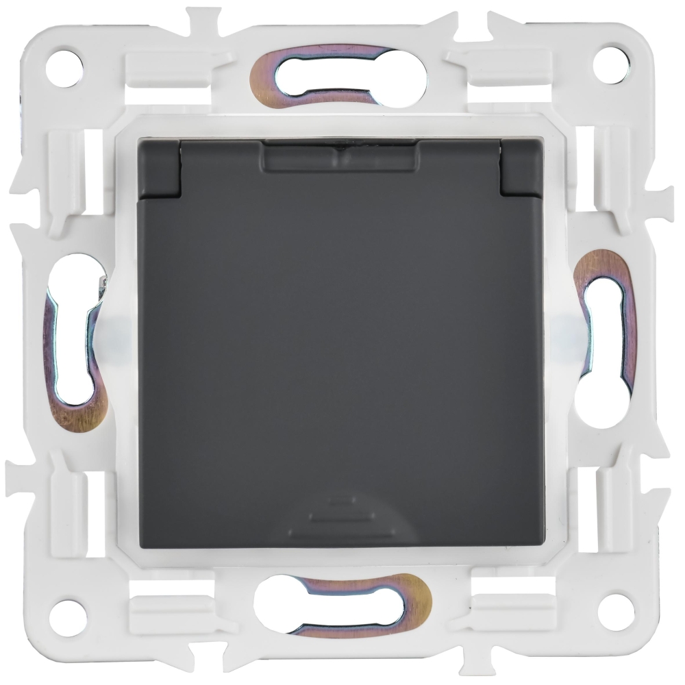 SKANDY Розетка 1-местная с заземлением с защитными шторками и крышкой 16А IP44 SK-R11G графит IEK