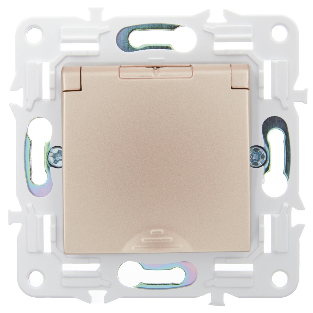 SKANDY Розетка 1-местная с заземлением с защитными шторками и крышкой 16А IP44 SK-R11Sa песочный IEK