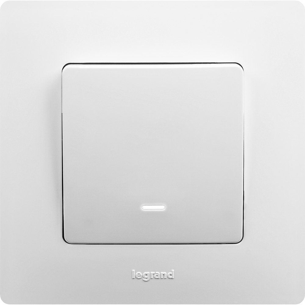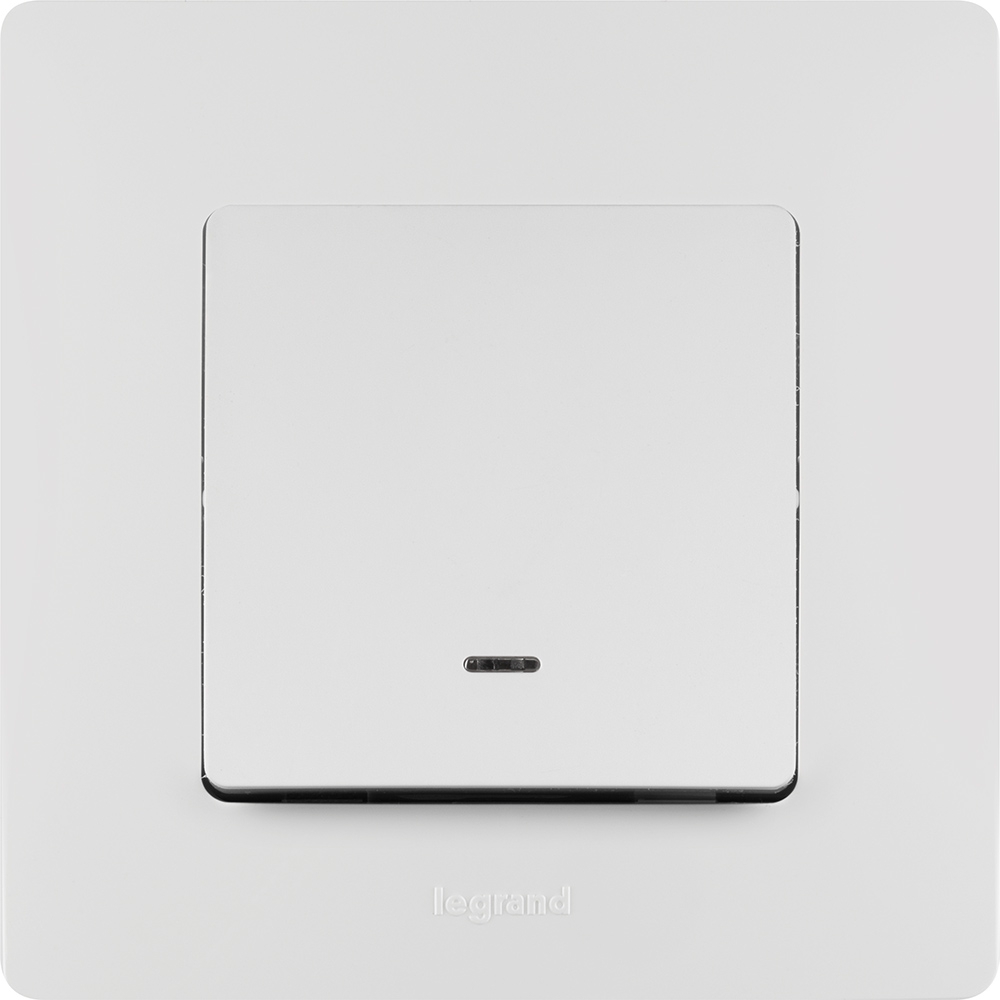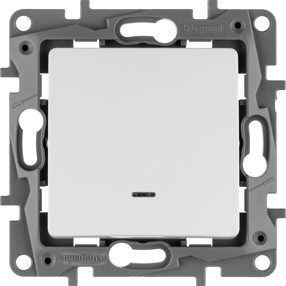 Выключатель с подсветкой одноклавишный Legrand Etika для скрытого монтажа, номинальный ток 10 А, цвет белый. Используется для управления приборами освещения, вентиляции ит.д.