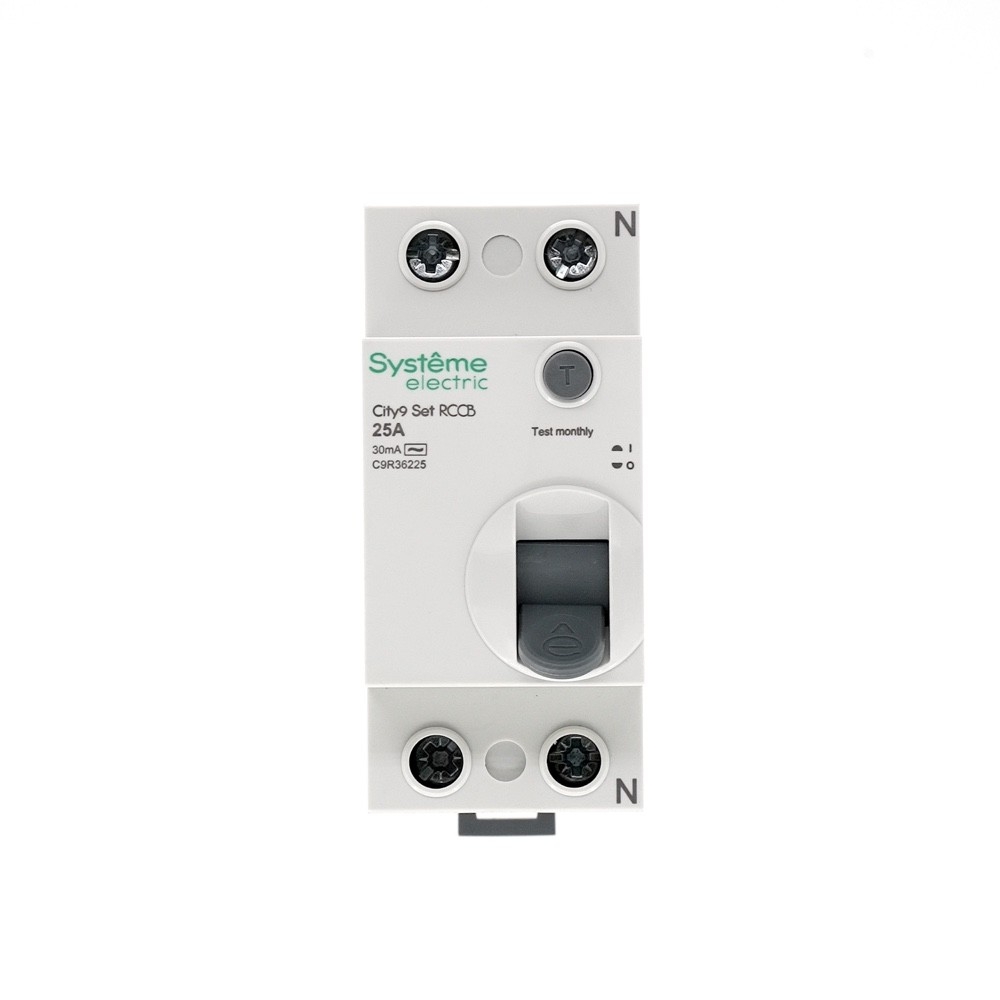 Выключатель дифференциального тока (ВДТ) или устройство защитного отключения (УЗО) серии City9 Set Systeme Electric, 2-полюсный, номинальный ток 25А, ток утечки 30 мА, тип АС, электромеханический. Применяется в электрических сетях напряжением 230В. Уставка по току утечки 30 мА обеспечивает гарантированную защиту людей при прямом и косвенном прикосновении. Кнопка тест обеспечивает проверку работоспособности аппарата. Крепление на DIN-рейку шириной 35 мм. Подключение сверху и снизу. Безопасные клеммы.