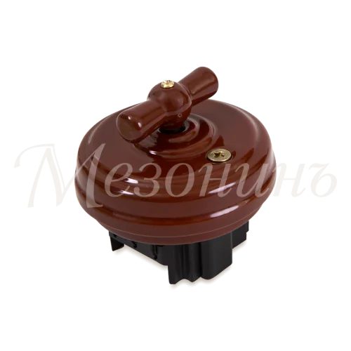 GE70404-04K Выключатель фарфоровый поворотный на 2 положения, проходной (D70x35, 10А, 250В, IP20, без подъемной рамки), цвет - коричневый, МЕЗОНИНЪ